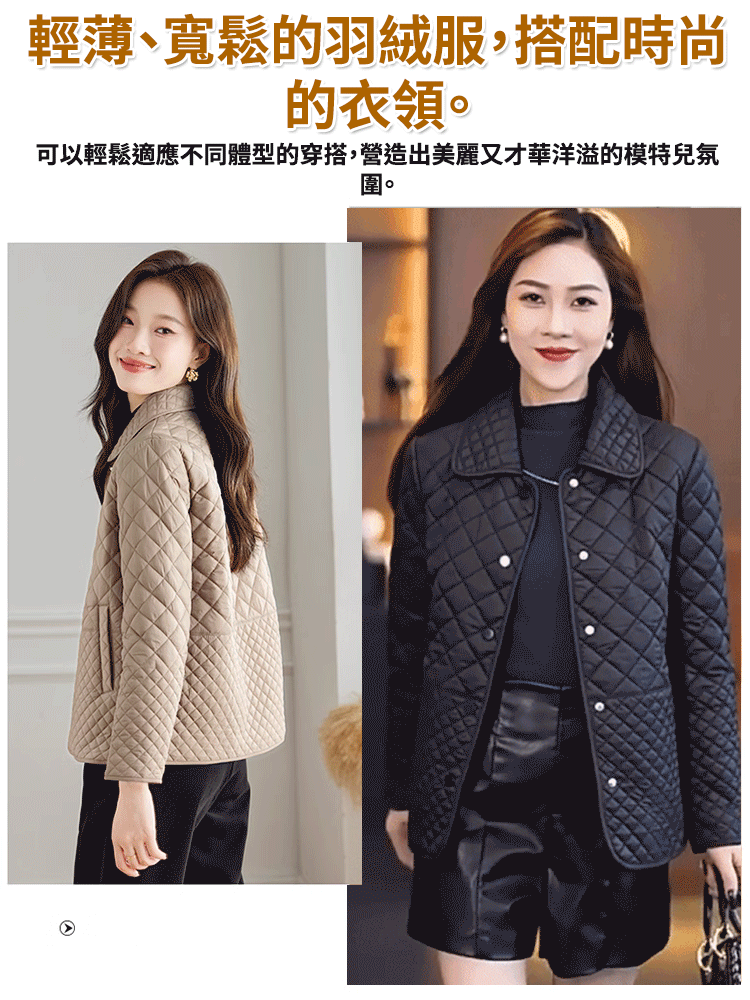菱格時尚輕薄羽絨棉服